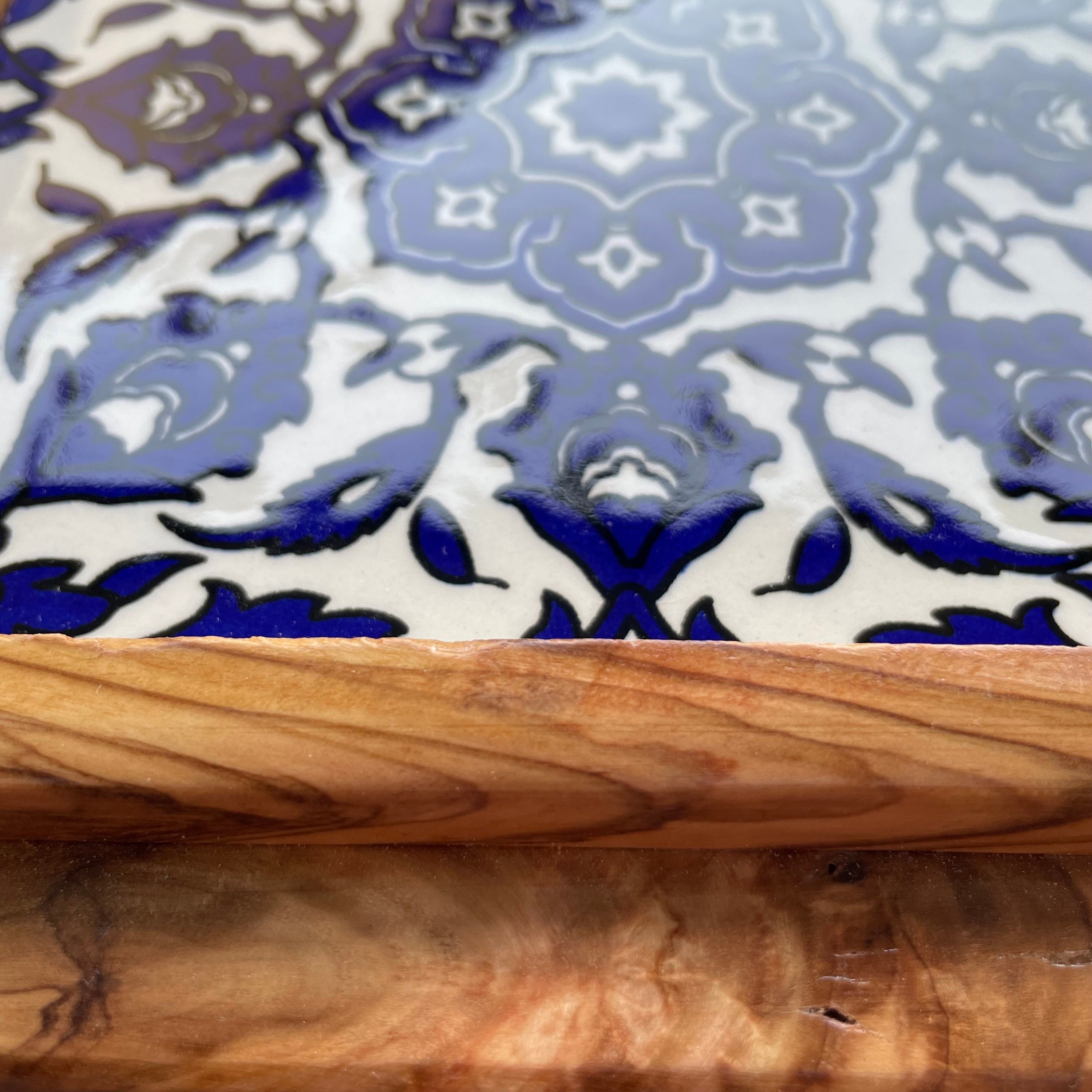 This decorative olive wood tray is a real eye-catcher! The special thing: each tray has its own individual grain and is made by hand - so every part is unique! The tray is decorated with ceramic tiles - on the one hand it looks beautiful and on the other hand it is also very practical as it can be easily wiped clean.
