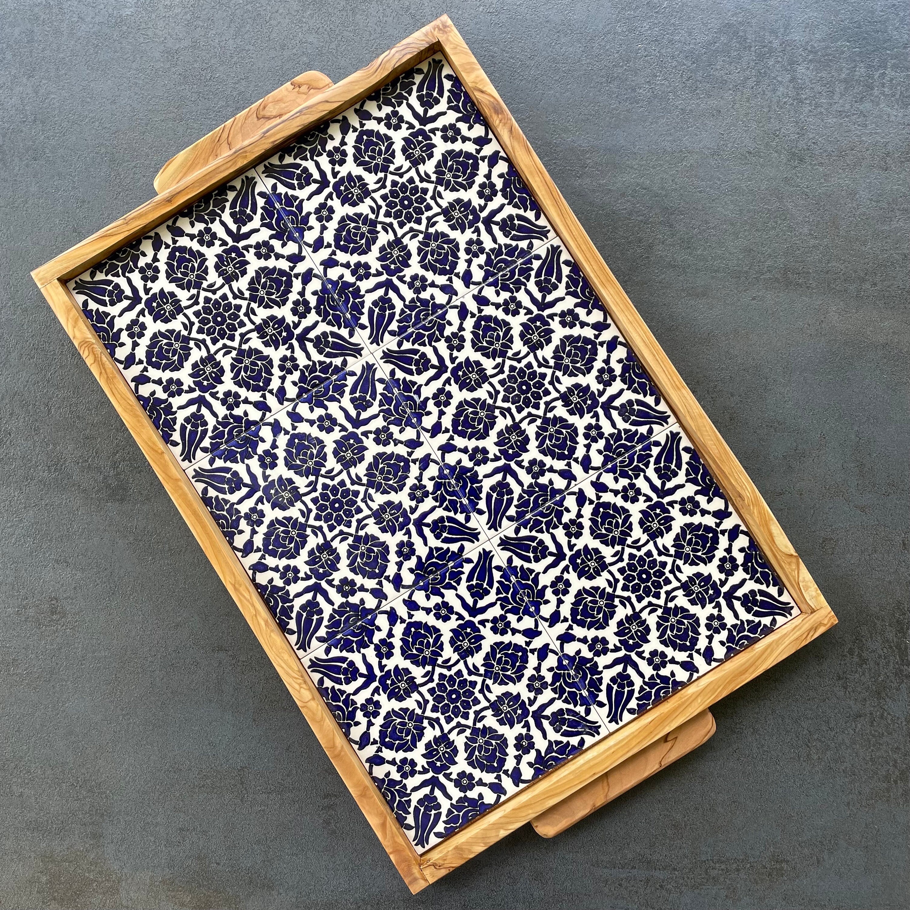 This decorative olive wood tray is a real eye-catcher! The special thing: each tray has its own individual grain and is made by hand - so every part is unique! The tray is decorated with ceramic tiles - on the one hand it looks beautiful and on the other hand it is also very practical as it can be easily wiped clean.